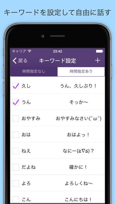 友達や恋人がほしい方にお勧めです。キーワードに反応して返信してくれます。制作した架空のキャラクタ―をシェアすることによって多くの人が返答のキーワードを追加していき成長させてくれるので実際に会話しているかのように錯覚します。