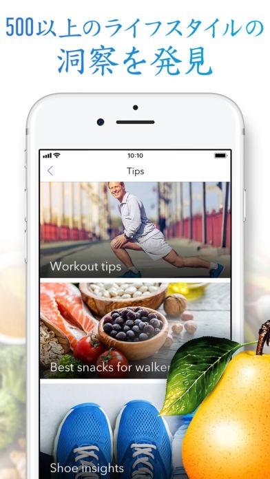 アプリでは進捗状況をトラッキングしており、状況に合わせてモチベーションを保つためのヒントやコツを教えてくれます。進捗状況を確認しながら目標に向かってウォーキングを楽しみましょう。