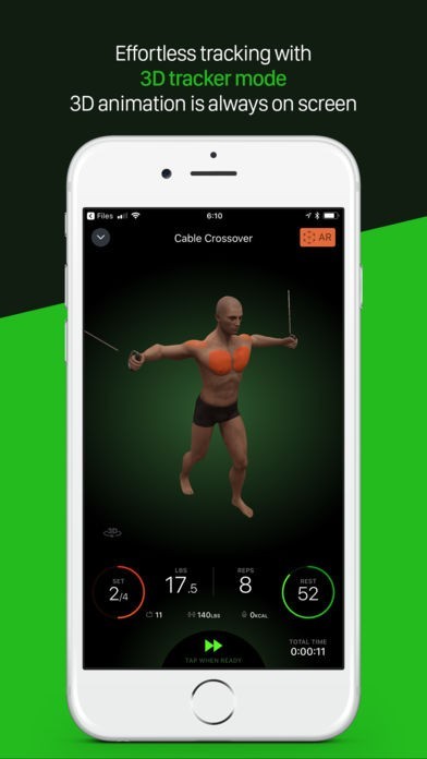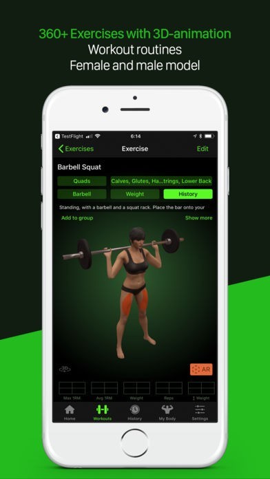 App Storeより引用Welcome to the world of Augmented Reality (AR), which is more powerful now thanks to Apple's AR support. Meet our virtual trainer and your avatar. With the help of AR, they can appear at your place whenever you need them. Whether you’re planning your workout or working out somewhere, they will come handy. Set the avatar to represent your gender, height and body fat percentage. After you log a workout, all the muscles you trained will appear on your avatar. And the more you train during the week, the less rested muscles you'll have. The app will show you which muscles are ready for training. Use the virtual trainer, our model, to check how to properly do fitness exercises and to see which muscles you’ll use while exercising.