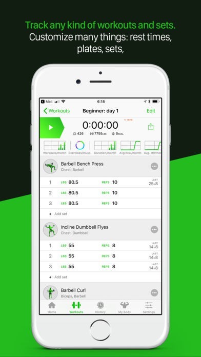 Track any kind of workouts and sets: