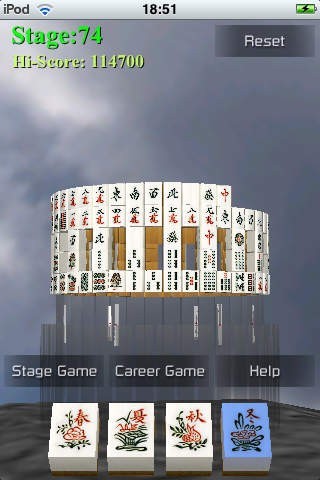 全部で100ステージある、さまざまな形状の麻雀タワー