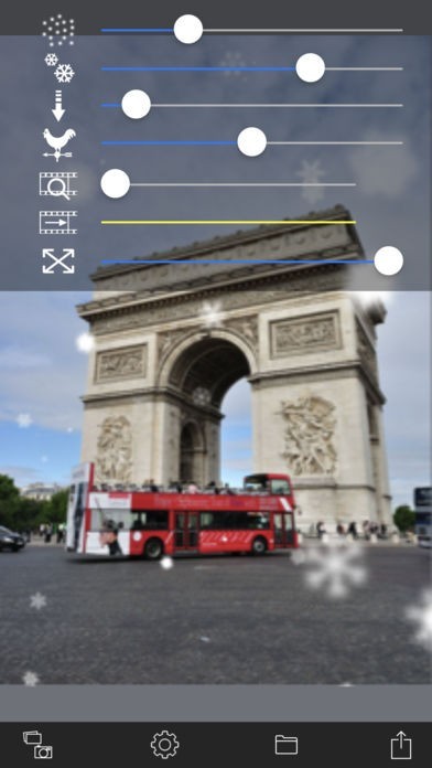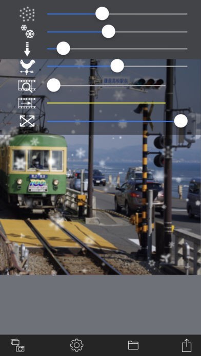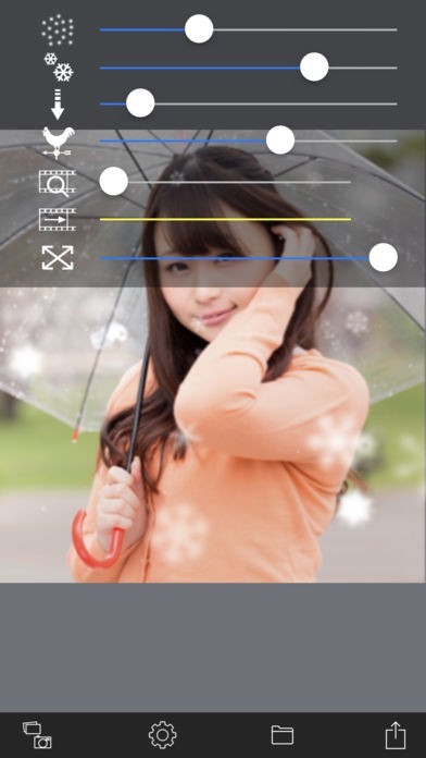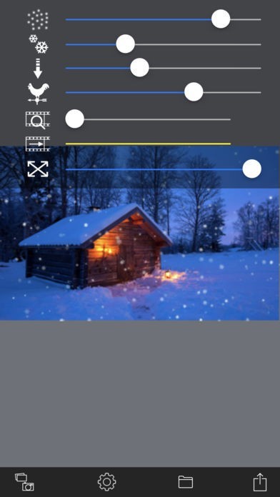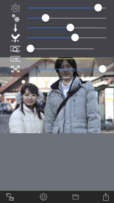 デバイス本体のカメラで撮影したビデオや、すでにカメラロールに保存された動画に雪の効果を与えることができます。