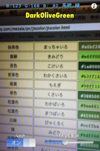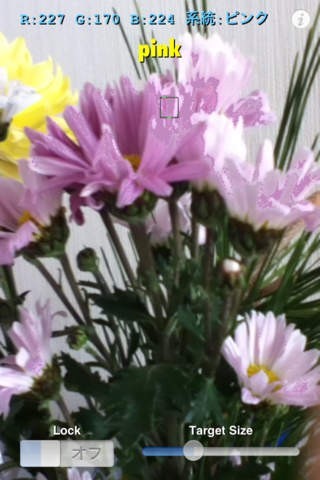 ターゲット枠内に映った物の平均的な色の名前が即座に表示されます。