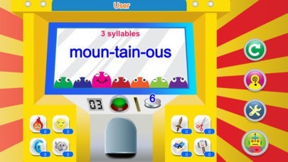 App Storeより引用Syllable Count (Multi-User) is a fun game to improve your child's reading and spelling abilities. Breaking the word down by syllables can help kids read the word. Practice sounding out the word (to hear the sound of a vowel) or breaking the word into parts will build a strong foundation in reading for beginning readers. All of the app's 6,500 words are all grouped into 7 syllable words. In this game, your child will collect the coins by answering the number of syllables in the word correctly. Then, kids can spend their coins for the prizes from a game machine. All of the prizes you get will be used and played in fighting game, You (Monster) vs Robot, which is similar as rock-paper-scissors game. Try to count the syllables in a word as many as you can!