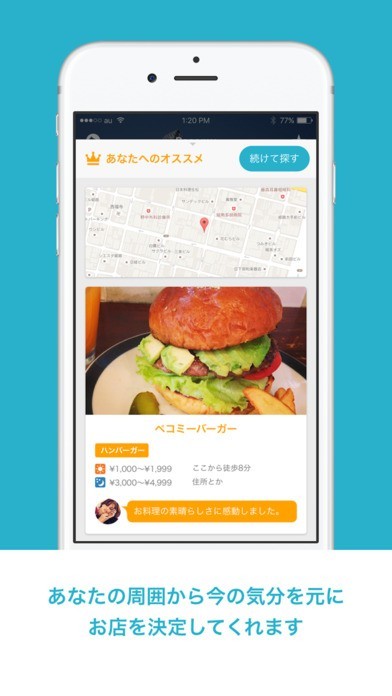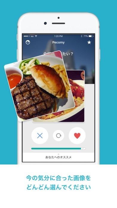 画像が表示されどんどんと選択していくだけでオススメの店を知らせてくれる
