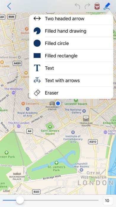 App Storeより引用マイマップノートは非常に簡単で使いやすいアプリケーションです、マップ上に何でも自由に描くことができます。 あなたの画像メモは地図とともに移動、回転、ズームイン、ズームアウトします。 また、画像メモは、名前を付けて保存できます。必要に応じてオンまたはオフにすることができます。