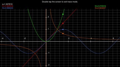 トレースモードを搭載しているので、グラフの関数値を調べる際に便利です。また作成したグラフはピンチでズームアップしてみたり、ドラッグすることで移動させることができます。