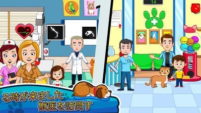 App Storeより引用皆、ペットが大好きです。My Town:ペットには一緒に遊べるペットがたくさんいます。ペットの世話をしながら、すばらしい冒険を体験してください。動物保護施設からペットを譲り受け、獣医に連れて行き、健康に保ちましょう。アニマルスパでペットをきれいにして、ペットファッションストアでドレスアップしましょう。アニマルパークに行った時、素敵なペットを披露できます。