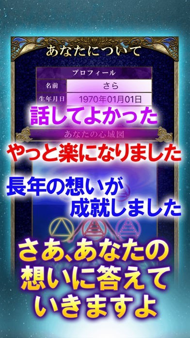 どのような道に進めばいいのか分からない方や、自分の性格が分からないと迷っている方に是非オススメです。スピリチュアルや東洋占術などとの融合で占うのであなたを幸せへと導いてくれるとても素晴らしい占いアプリです。