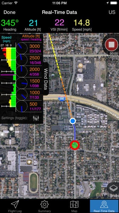 風のデータを追跡し移動した先での風量が分かる