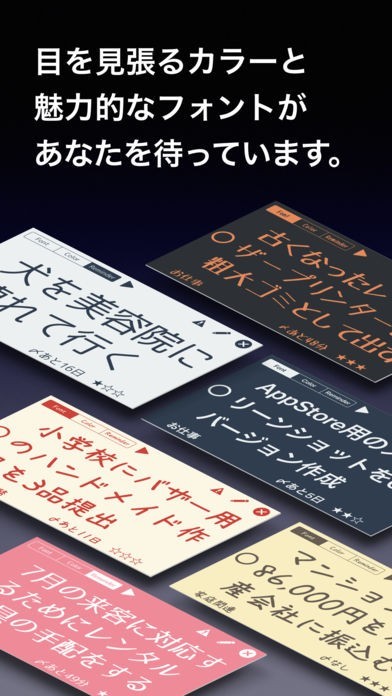 App Storeより引用大きい文字と美しく鮮やかな配色で見やすいリマインダーアプリを作りました。