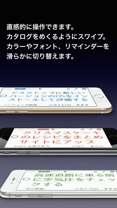 カードをめくるような感覚で次々にリマインダを全画面表示することができます。