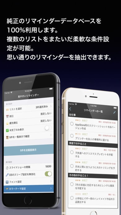 標準のリマインダーデータを全画面で表示する他には無いユニークなアプリです。