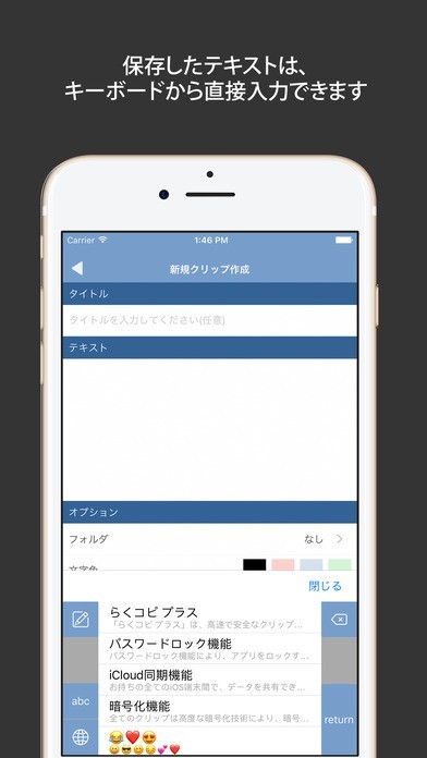 セキュリティにも力を入れているアプリで、コピーしたものは全て暗号化処理されて保存されます。アプリ自体のロックが可能なので、安心して様々な用途に使用できます。作業効率と情報管理を両立させたアプリと言えます。