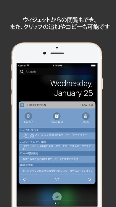 搭載されているウィジェット機能を活用することで、いつでも保存した文章の入力が可能になります。また、文章の他にも、スマートフォンで撮影した写真などを保存できる画像クリップ機能を搭載しています。