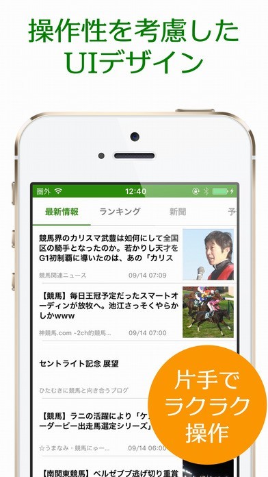 各馬の状況やこれまでのレースの結果、競馬にまつわるニュースなど様々な競馬情報が一括で調べられる機能が充実しています。時系列順に並び替えたり、人気の高い記事をトップに持ってくることができるので、ほかの競馬ファンが入手している情報に置いて行かれることがなくなります。競馬の結果予想をする上でライバルに不利を取りたくないと考えている方にとって非常に便利な機能です。また、ニュース内容は定期的に更新されるだけではなく、競馬場でもさっと読めるように片手での操作に特化しています。何度も読み返したいニュースはお気に入り登録できるのも便利な機能の一つです。
