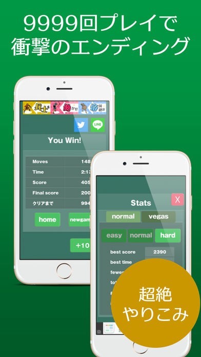 このアプリをインストールすると、定番のソリティアをプレイできます。9999回ソリティアをクリアすると衝撃のエンディングが待っているので、ぜひ自分の目で確かめてみてください。