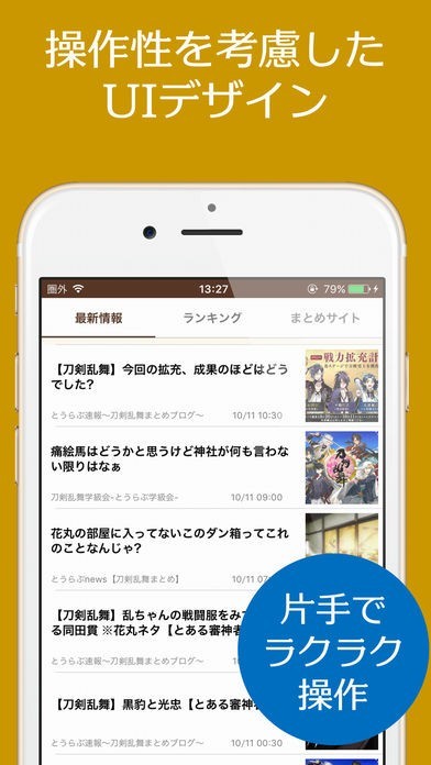 「刀剣乱舞」の情報を専門的に取り扱うニュースアプリとして、ゲームの最新情報やニュースの配信を行っています。刀剣男子の入手に必須となる鍛刀レシピなども充実しているのが特徴です。