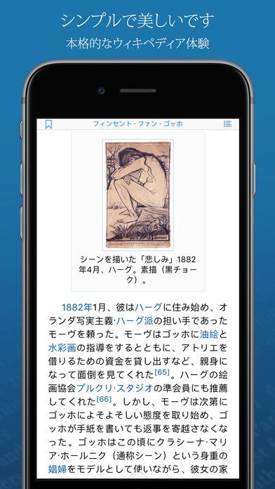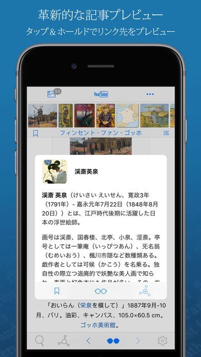 ウィキペディアの閲覧を便利にしてくれるリーダーアプリです。ブラウザで見るようりもシンプルで分かりやすくなっています。また、タップするだけでリンク先をプレビューすることができます。
