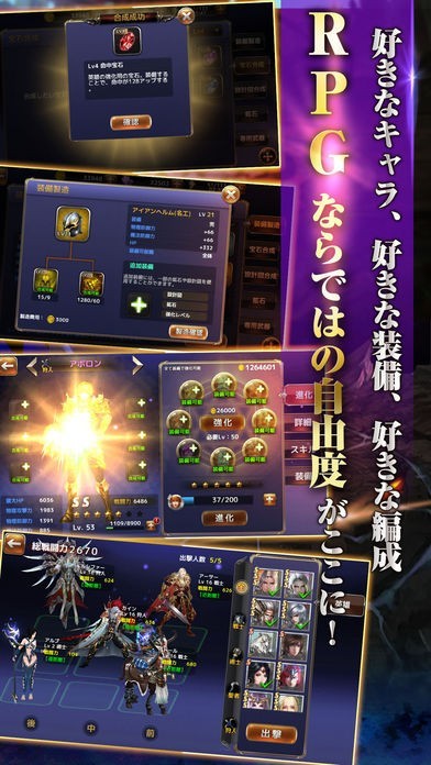 これまでのスマートフォンアプリケーションゲームではできなかった細かい選択が可能となっています。これにより、キャラクターを自分だけの主人公に仕立て上げることもできますし、ストーリーをメイキングすることもできるようになっています。