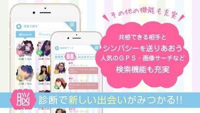 このツールでは自身の脳のタイプを調べる事ができ、相性が良いとされる他のユーザーに診断結果を送信することができる出会い系SNSでもあります。そのため同じ心の人とつながることができます。