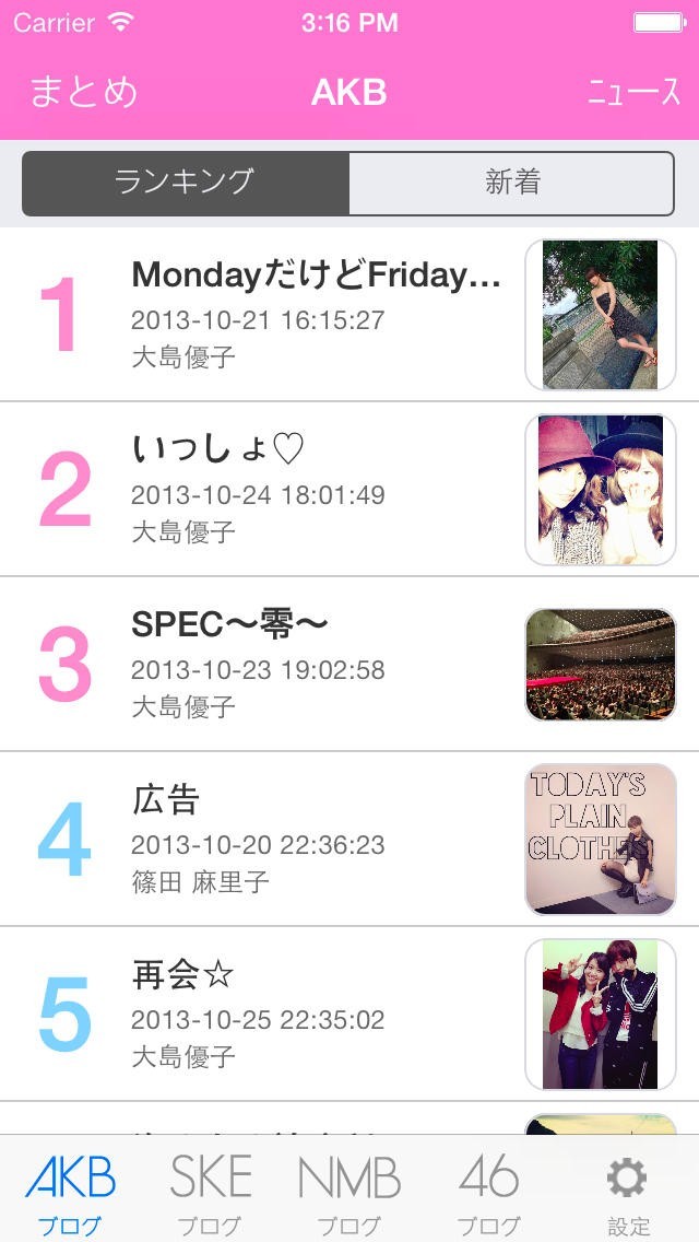 AKB、SKE、NMB、乃木坂ファンの方に便利!ランキングと新着記事が分かる