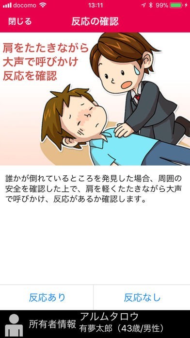 質問に回答することで倒れている人に必要な一時救命措置を教えてくれる!