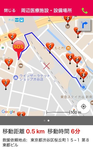倒れている人の救命措置を行うためのガイドや必要な情報を検索することができる医療補助アプリが『MySOS』です。倒れている人に必要な一時救命活動の流れが閲覧することができるようになっていて、倒れている人の状態に合わせて質問に回答していくことで必要な措置を教えてくれるので安心して救命活動を行うことができます。救援依頼機能では周辺にいるアプリのユーザーに対して救援依頼を発信することが可能になっていて、受信したユーザーは救援依頼が出ているスポットをマップ表示してルート案内してもらうことができます。さらに近隣のAEDの設置場所などをマップ表示することも可能です。