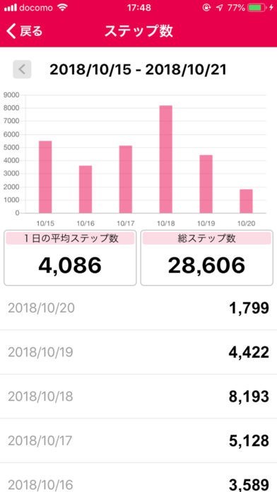 ヘルスケアから取得した歩数から消費カロリーを算出し日々の健康管理に役立てます。