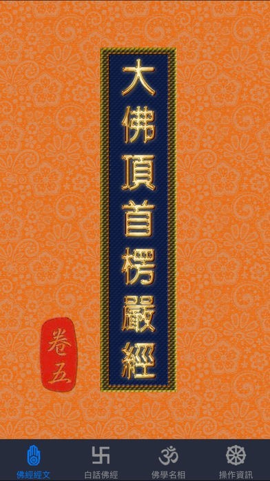 楞嚴經全經共有十卷,因卷帙疊繁浩,再加上白話譯文與佛學名相解釋,頁數更為可觀,故將此十卷,分別製作了十個App, 以『楞嚴經卷一』、『楞嚴經卷二』…『楞嚴經卷十』的方式命名,請以此關鍵字在App Store搜尋即可。