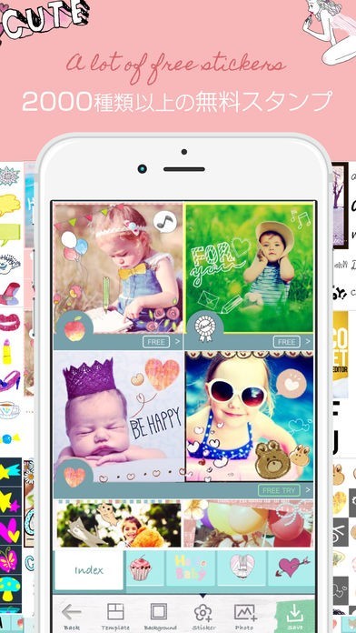 2000種類以上のスタンプを収録。タップでペタペタ貼るだけで写真が可愛く大変身!