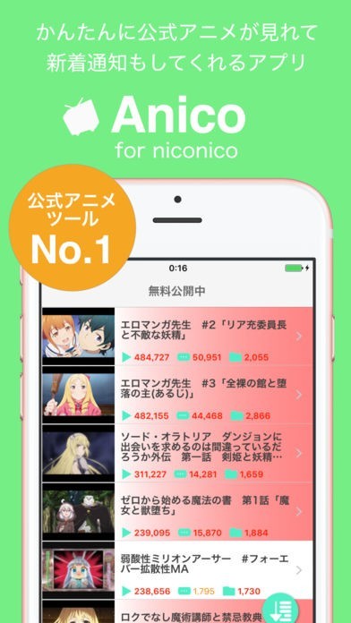 Anico for nico 公式アニメの視聴と通知が簡単にのスクリーンショット