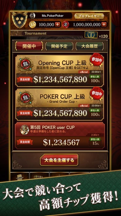 ポーカーの世界大会などを主催している人などの、大物有名人とテキサスホールデムで1対1の勝負ができます。もちろん一般ユーザーとの対戦も出来るので様々なプレーヤーとタイマンを張れます。