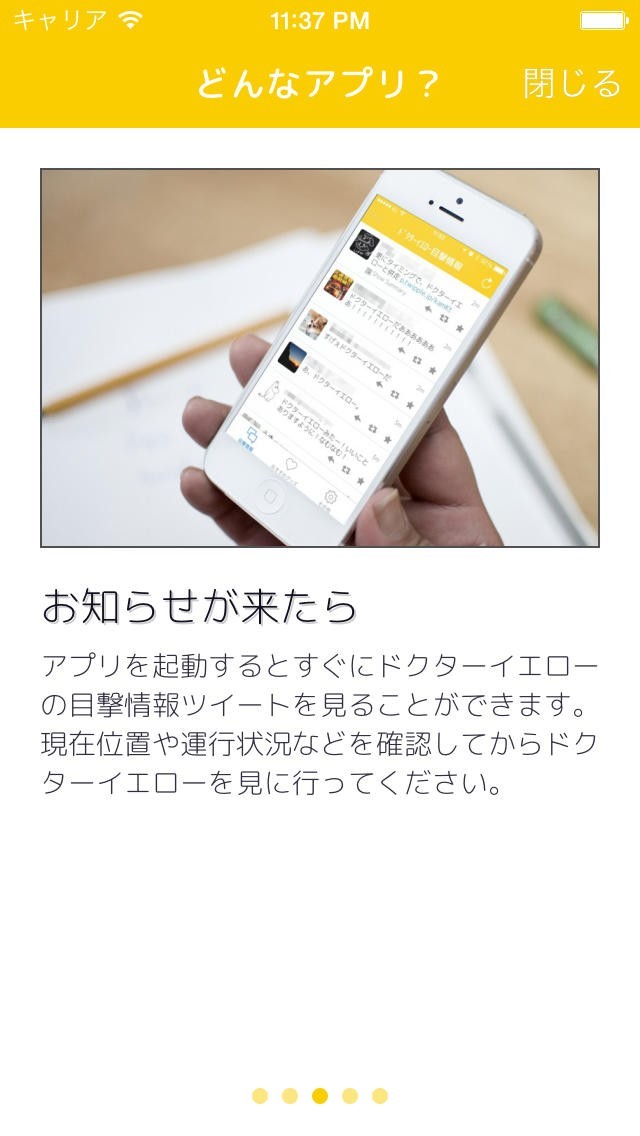 きっきーろー - ドクターイエローの運行日にプッシュ通知でお知らせ!では、メイン機能として普段はなかなか見られない黄色い点検計測用の新幹線・ドクターイエローの運行日がTwitterの情報などからプッシュ通知でわかるようになっています。また、運行日にはTwitterからドクターイエローの目撃情報を自動検索して読めるようになっているので、ドクターイエローがどこにいるのかなどの推測が可能になり、撮影に向かうことも出来ます。ドクターイエローを見たいという方で、特に東海道山陽新幹線の沿線近くに住んでいる方にはとても威力を発揮するでしょう。また、旅行の際などにこのアプリを使うとドクターイエローとの遭遇に対処しやすくなります。