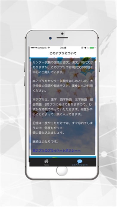 App Storeより引用センター試験の国語は古文、漢文、現代文がありますが、このアプリでは現代文の問題を中心に出題しています。