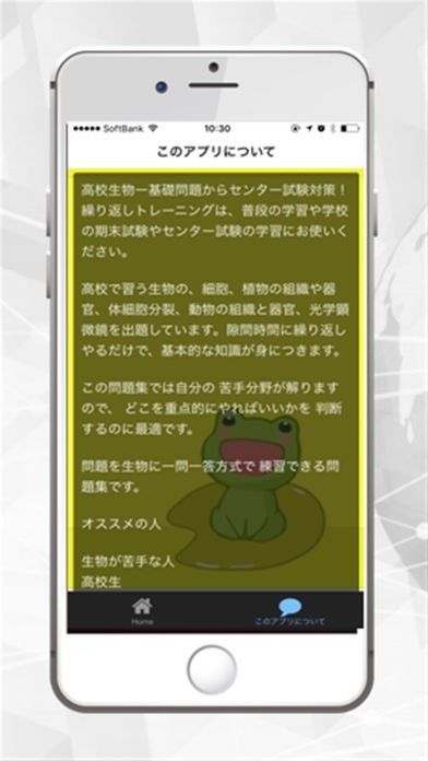 App Storeより引用高校生物ー基礎問題からセンター試験対策!繰り返しトレーニングは、普段の学習や学校の期末試験やセンター試験の学習にお使いください。