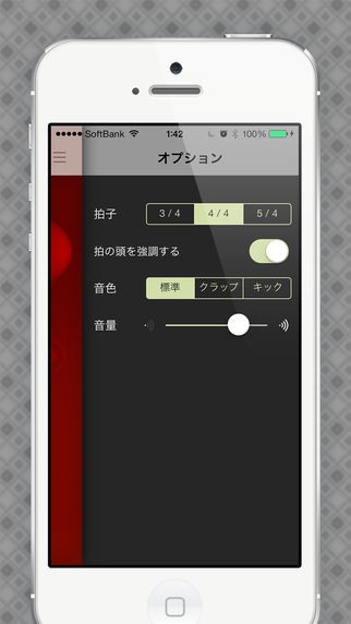 曲を流した後に「Pyxis」の中央に表示されるカウントボタンを拍に合わせて押し続けることで自動的に曲のBPMを計算してくれます。計算が終了すると自動的にメトロノームモードに移行し、リズムを刻み続けてくれます。
