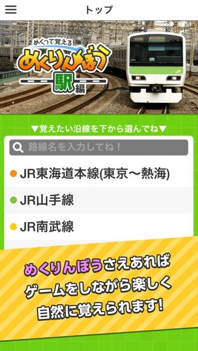 全国の駅名を簡単に覚えられる鉄道学習アプリ「めくって覚える!めくりんぼう -駅編-」