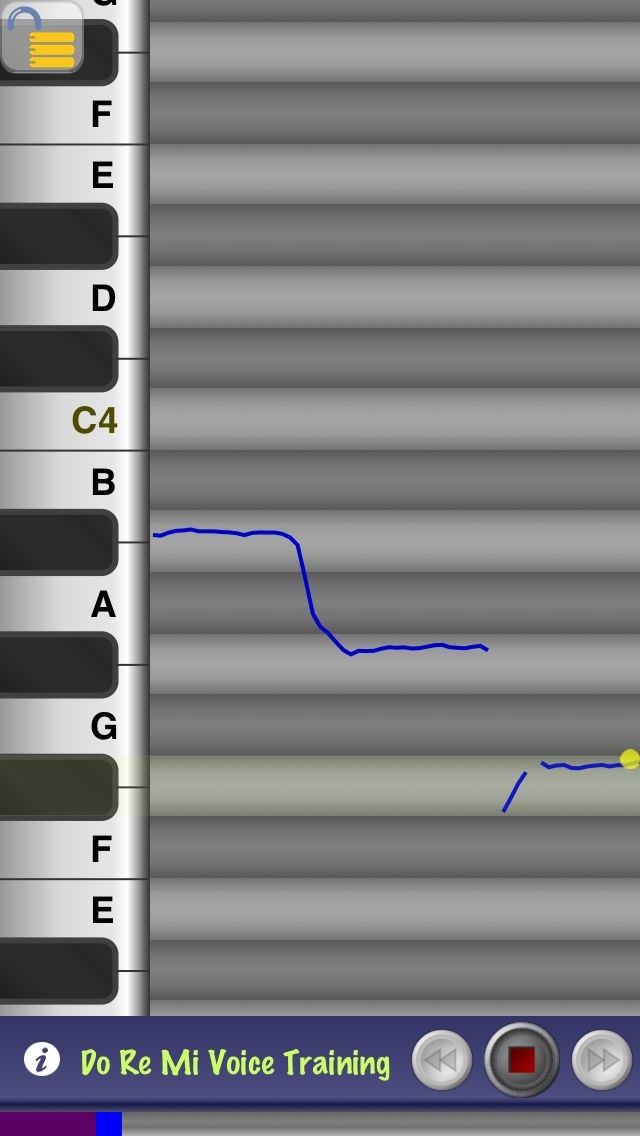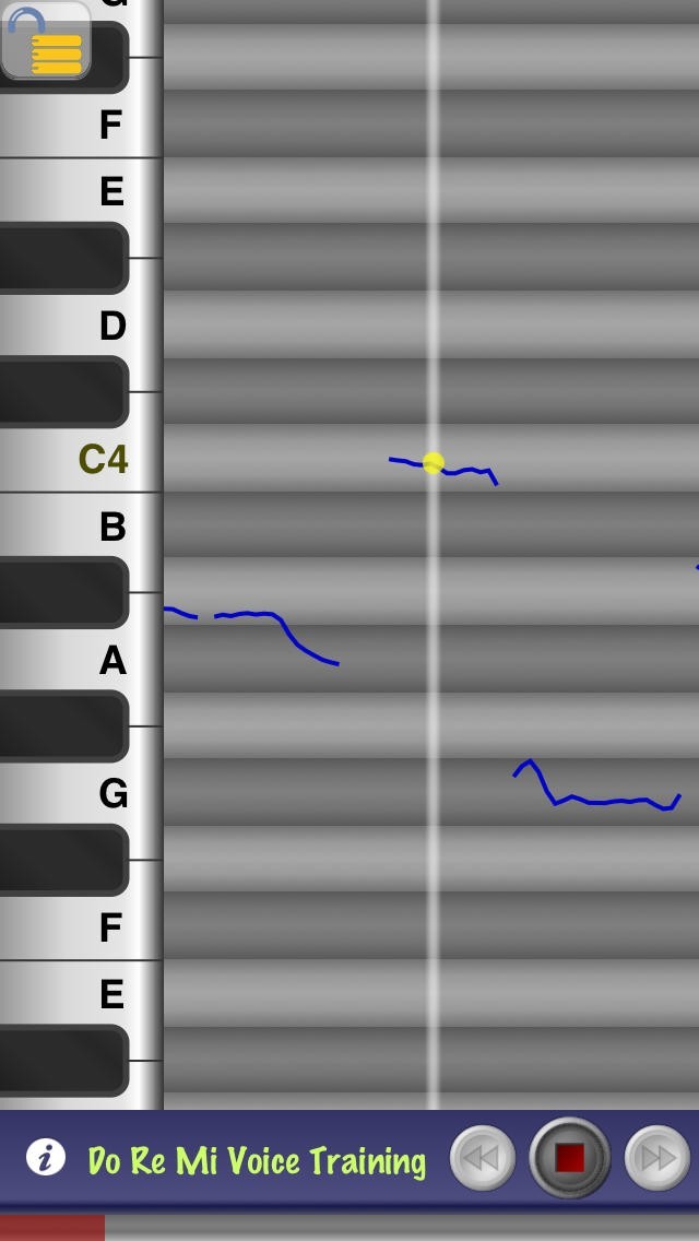 発声する力を高めるためのボイストレーニングアプリです。音程の確認やビブラートを上手に出すためのトレーニングができるようになっています。録音ボタンを押して発声することでアプリ内のキーボードに現在のピッチが表示されます。