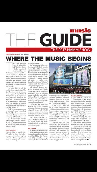 App Storeより引用Welcome to Music Inc. magazine, North America's leading business-to-business magazine for musical product retailers. Each issue of Music Inc. reads like a focused to-do list of best practices for retailers aiming to improve. Every issue includes hard-hitting news, Insightful "Ideas" columns from the industry's brightest minds and segment-by-segment previews of new gear and services for entrepreneurs selling musical products — from pianos, keyboards and pro audio to B&O, Guitars and DJ gear.