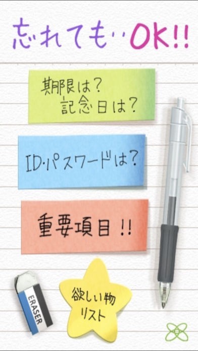 忘れてもOKは、記録やメモ、暗証番号などをまとめて管理することができます。女性が好む手書きの手帳風のデザインが癒されます。項目別に整理しやすく、見たい項目をすぐに表示します。。