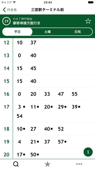 神戸市バスの時刻表がすぐに見れる!お気に入り機能を搭載した時刻表アプリ
