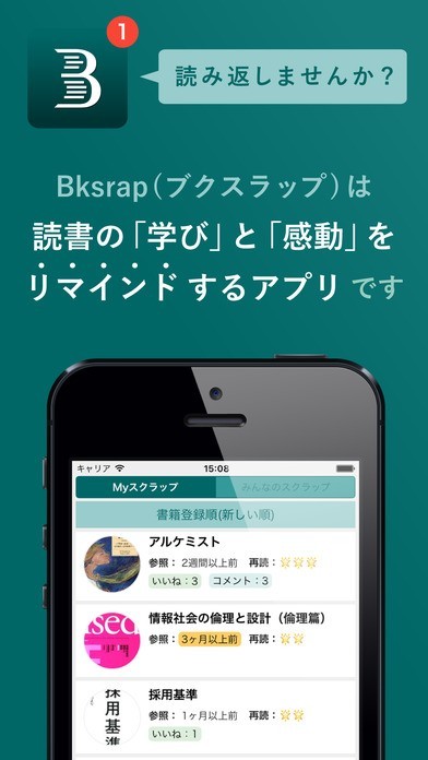 App Storeより引用ブクスラップは、読書の学び・感動を記録して、リマインドと再読することを重視した、新しいスタイルの読書管理アプリです。