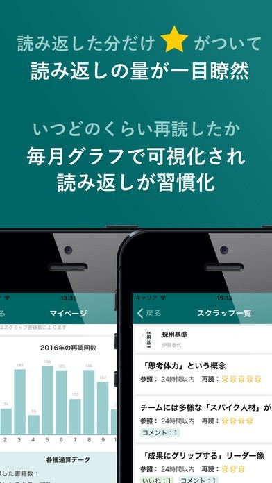 ・月次で再読履歴が可視化されるので、モチベーションも維持できます