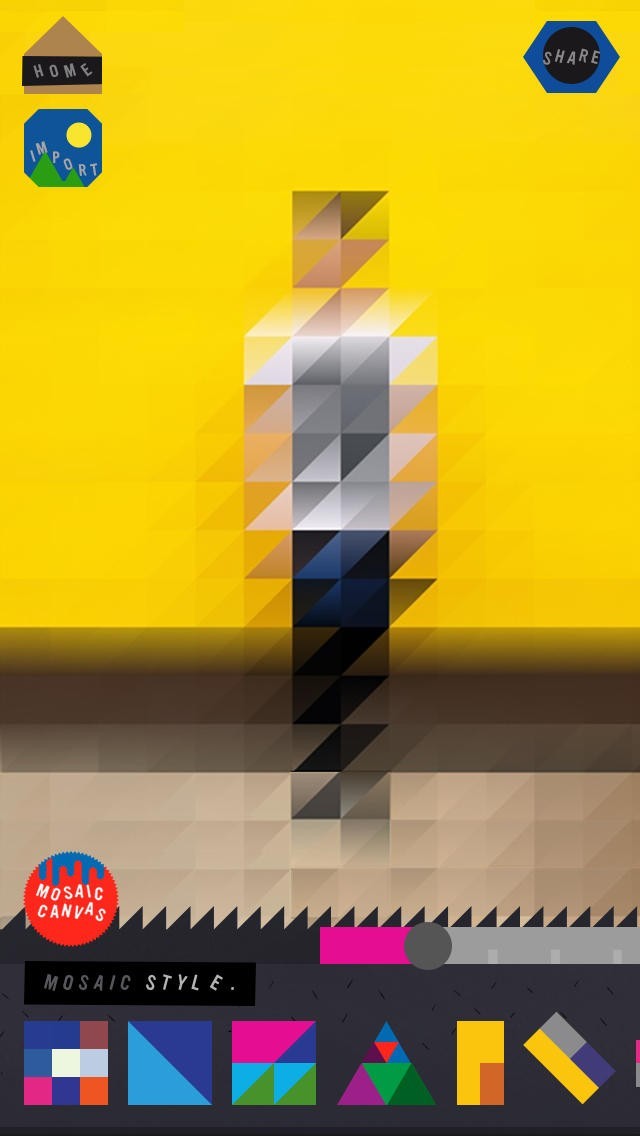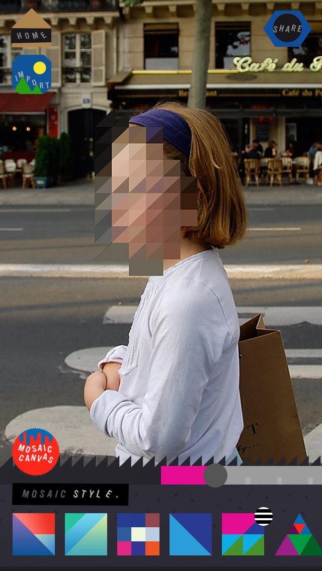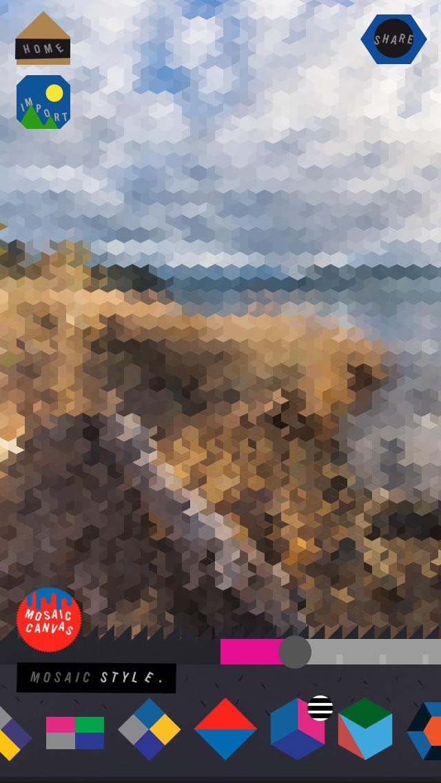 誰かと一緒に遊ぶのに最適なアプリです。自分の顔や知り合いの顔を使用して、心ゆくまでモザイク写真が作れます。作成した画像は「Twitter」「Facebook」I「nstagram」でシェアできます。