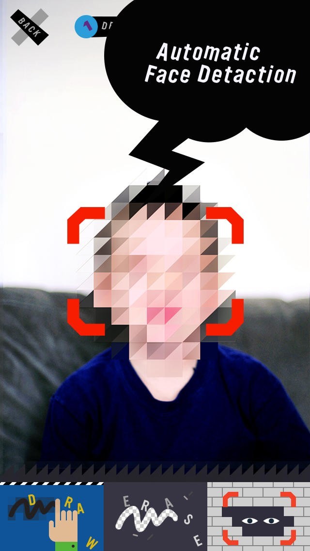 モザイクをかけたい場所はなぞって指定や人の顔を自動認識してくれます。輝度、コントラスト、彩度、透明度を調整する事ができ自分の好きな様に加工する事ができます。また、モザイク以外の場所をぼかしたり、背景を加工したりする事もできます。