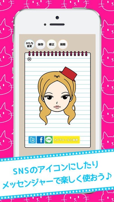 パーツの組み合わせだけで、なんと約300,000,000,000パターン!! パーツを選んで組み合わせるだけのカンタン操作で、あなたそっくりの似顔絵づくりができちゃいます。 iPadエンタメ1位を獲得した、大人気似顔絵アプリです。パーツの大きさや角度も自由に変えられちゃうので、こだわりの似顔絵から可愛らしいデフォルメした似顔絵まで自由自在。画像の保存も可能なので、SNSのアイコンにすることもできますし、スタンプみたいに使ってもOKです。 パーツは随時追加されます♪