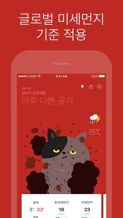 -최고로 쉽게 인지 가능한 컬러와 고양이 캐릭터로 공기 상태를 표현합니다.