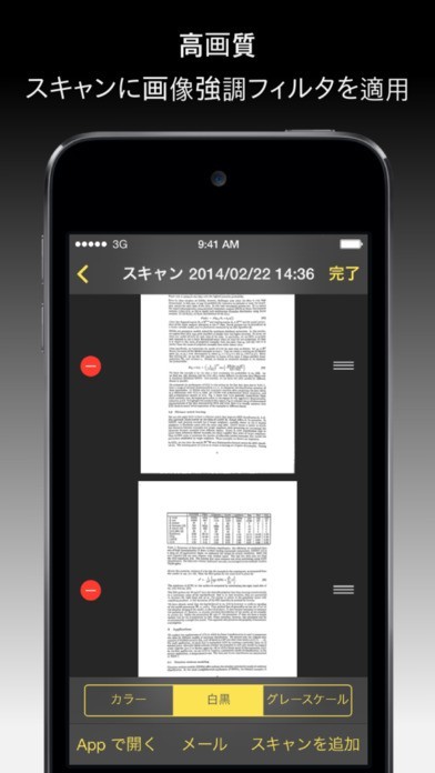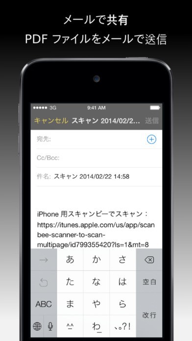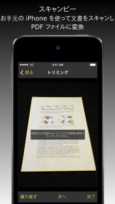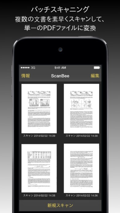 App Storeより引用ScanBee はお手元の iPhone をポータブルスキャナに変身させます。 任意の文書をスキャンして、高画質の PDF ファイルに変換します。