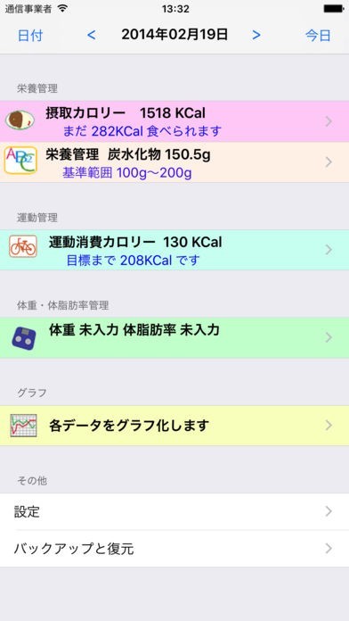 ・PFCカロリーバランスグラフの表示(*新機能)